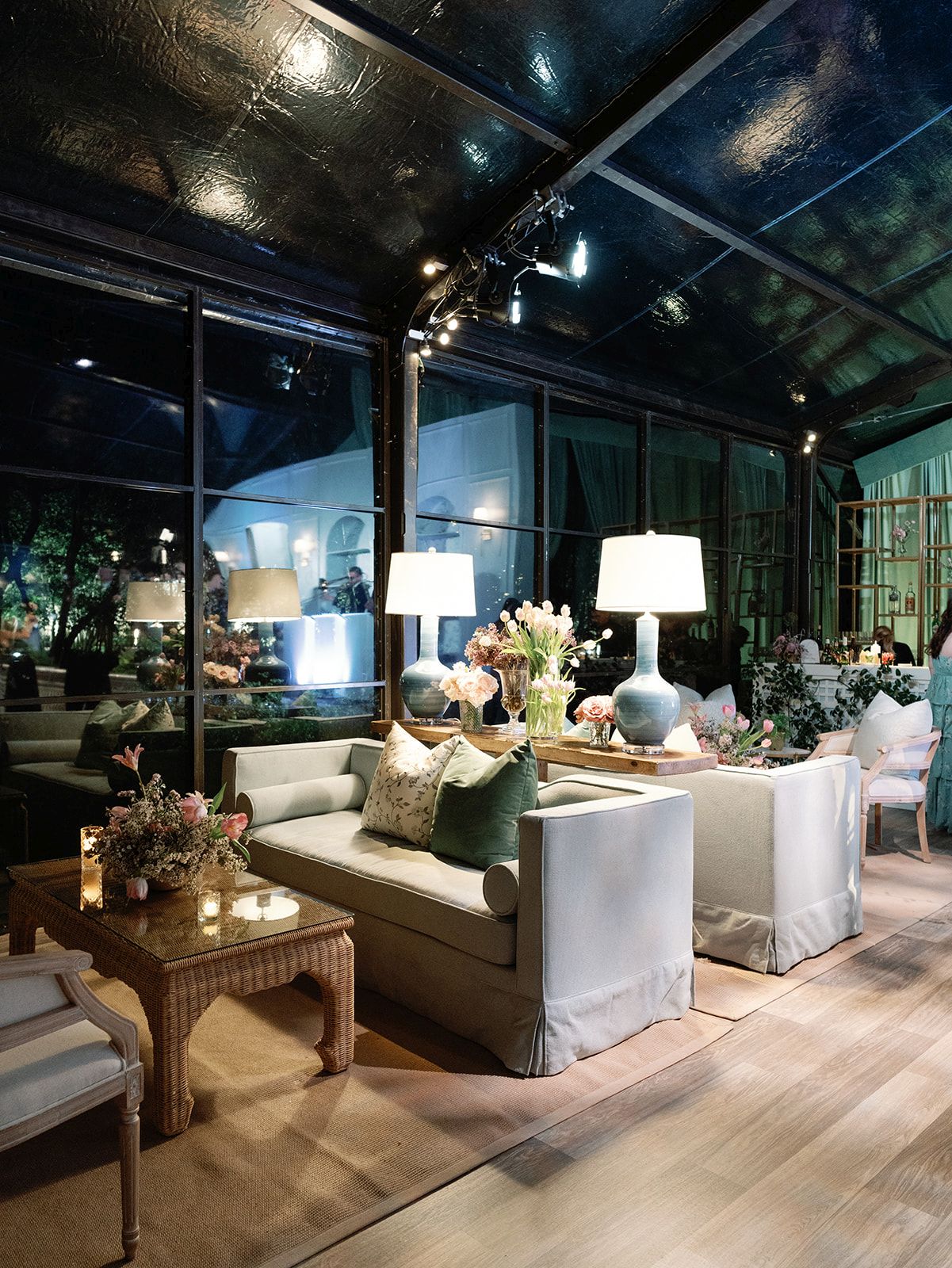 The Moment: This grand reception came to life through thoughtfully selected pieces that complemented one another while adding character to the overall design. Featuring natural, elegant selections like our Lane Banquette, White Gracie Dining Chair with Linen Cushion, and Natural Wood Arthur Dining Chair with Natural Linen Cushion, seating was a fabulous focal point rather than a purely functional consideration. Neutral fabric paired with sage-toned pillows allowed the patterned table linens and elaborate floral arrangements to shine. The result? A beautifully layered and unforgettable design that felt both refined and effortlessly inviting.