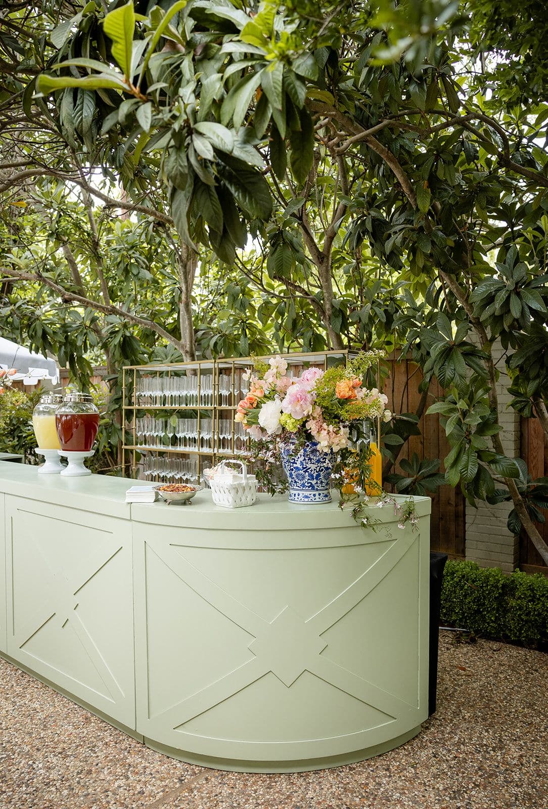 The difference between a beautiful backyard gathering and a truly luxurious event often comes down to the details. Accessories make the space feel curated and permanent, even though it’s temporary. Lighting is one of the easiest ways to elevate the atmosphere. Consider gold martini lamps on the tables, a lamp or two on the bar, or string lights overhead to create warmth and ambiance.